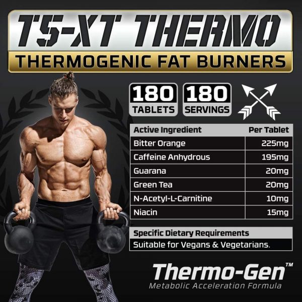 Our experts have formulated a uniquely potent Fat Burning tablet, designed to succeed where others have failed. T5-XT delivers big with a combined and synergistically effective hit of multiple thermogenic compounds and fat-fighting natural extracts. GTN T5-XT Thermo-Burn Fat Burners are the secret weapon you need in the battle to achieve your weight management goals. They are also awesome as energy tablets, fuelling mental and physical drive in the office as well as the gym.