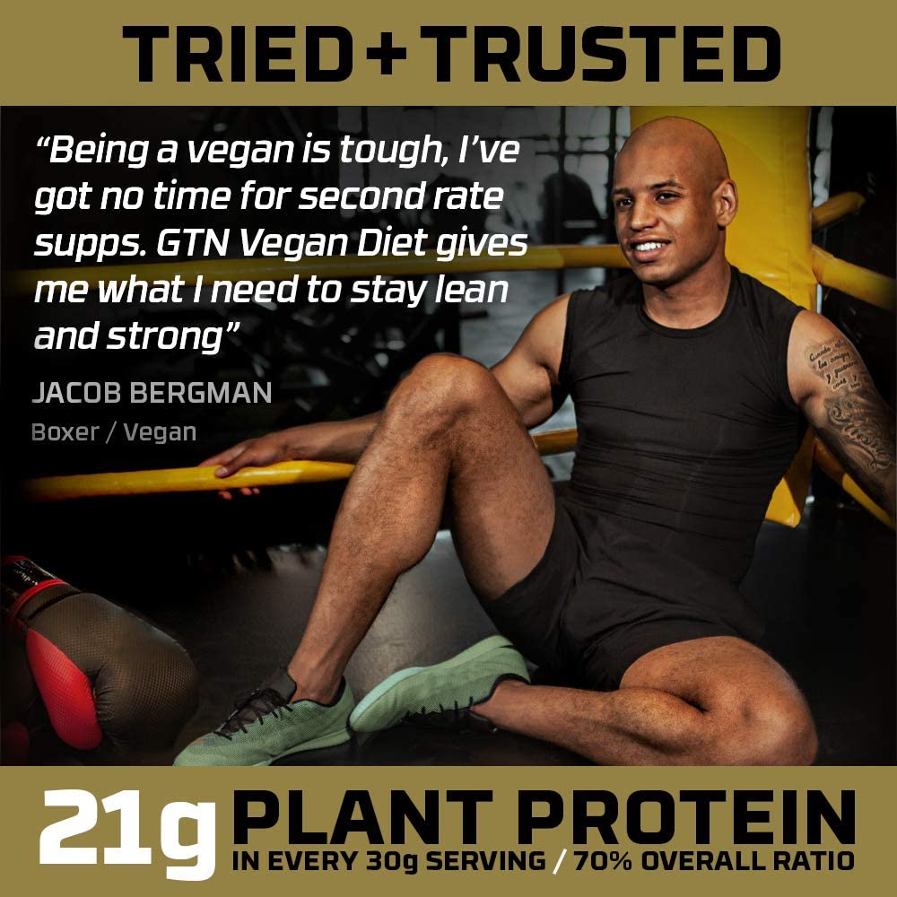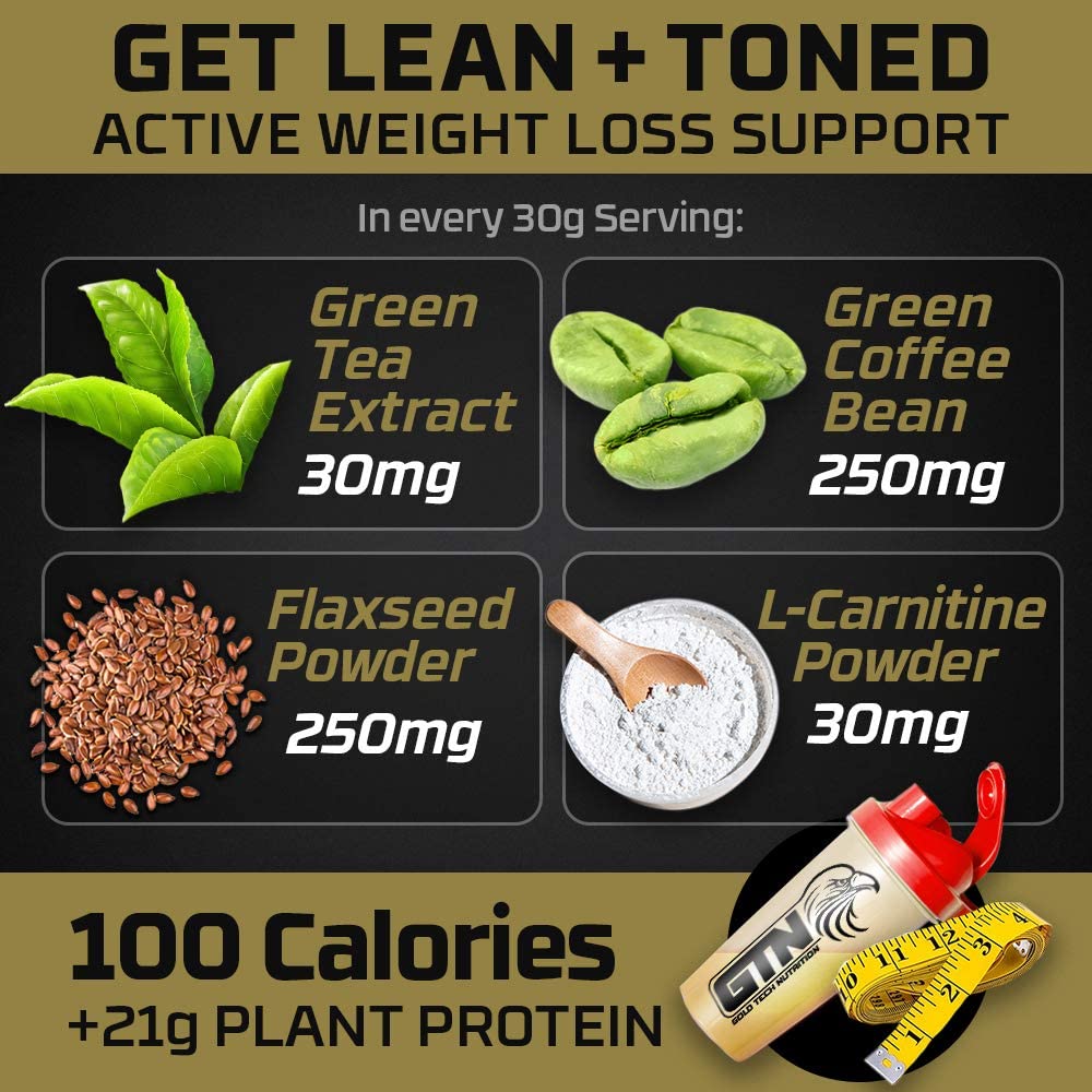 GTN Vegan Diet Protein Blend: (Pea Protein Isolate, Soya Protein Isolate), Maltodextrin, Green Tea Extract, Green Coffee Bean Extract, L-Carnitine, Flaxseed Powder, Colour (Caramel), Thickener (Xanthan Gum), Sweeteners: (Stevia, Sucralose). Allergen Advice: Made in a facility that handles milk, egg and soya. |